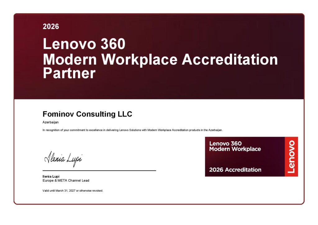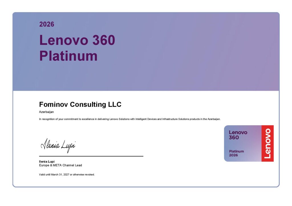 Achieving Platinum partner status further strengthens FOMINOV CONSULTING’s position as a trusted technology partner in Azerbaijan, capable of delivering advanced Lenovo solutions and services for organizations across multiple industries.